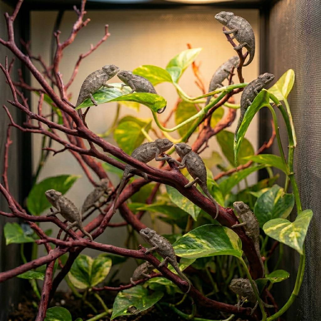 To honor our Live Animal Guarantee, your setup must mimic the Madagascar environment using these exact Chameleons 101 standards: